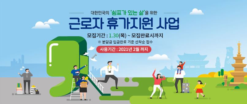 그래서 "근로자휴가지원사업"이라는 정부사업이 있는데 회사에서 20만원, 개인이 10만원, 나라에서 10만원 지원해줘서 총 40만원으로 사용할수있습니다.