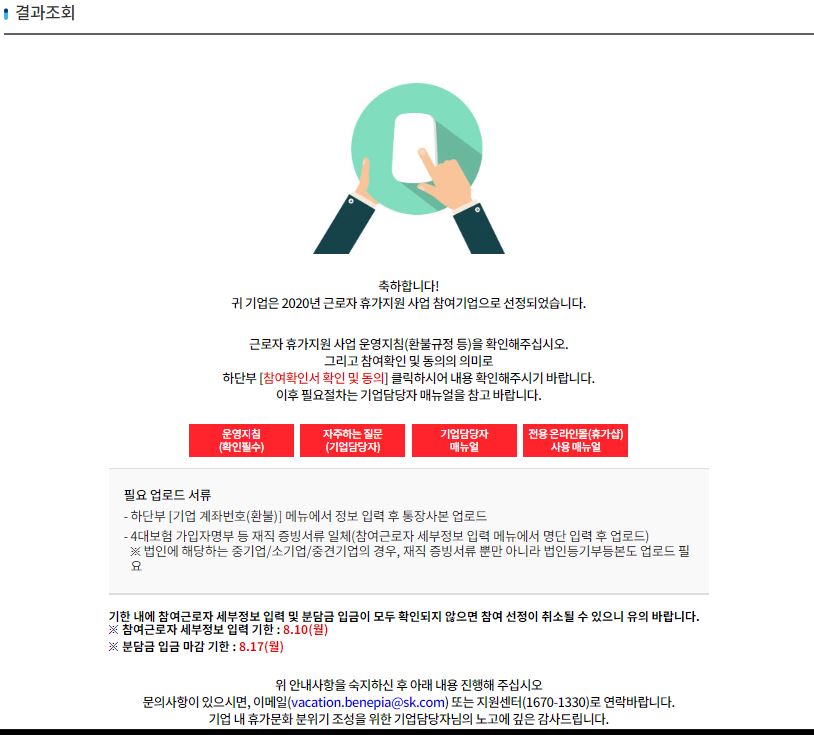 근로자휴가지원사업 관리자시스템에 회원가입후 필요한 서류 업로드를 하신 후에 이제 분담금입금을 하게 되면 됩니다.