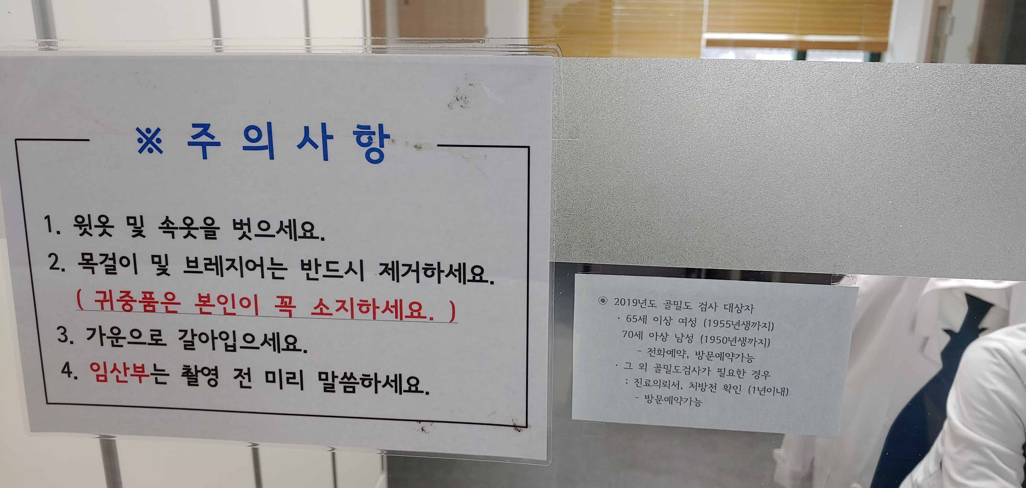 검사는 간단히 항문면봉검사와 흉부검사가 끝이다. 항문 면봉 검사는 사람이 많은 경우에는 줄을 서서 조금 기다려야 하는 경우도 발생된다. 방법은 간단히 항문에 면봉을 3cm가량 집어넣었다가 빼서 저 플라스틱 통에 넣어주면 끝난다.