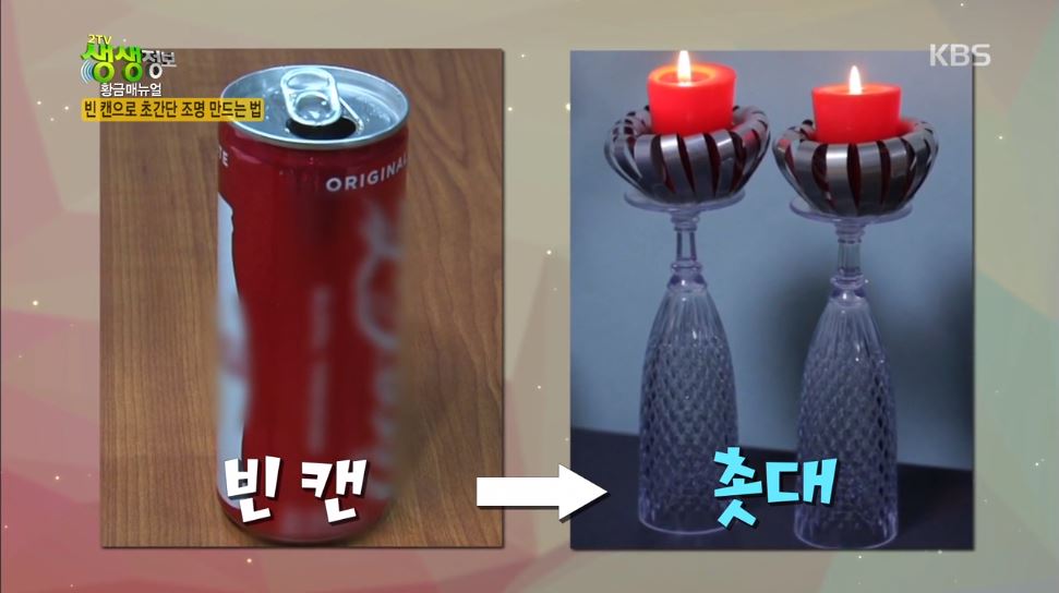 준비물: 빈 캔, 와인잔(컵), 테이프, 양초, 송곳, 가위