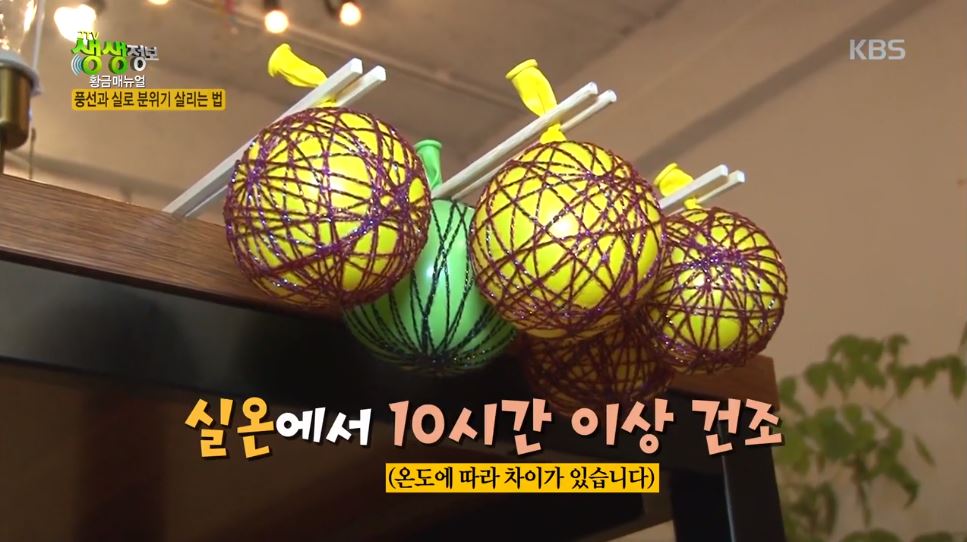 3. 나무젓가락에 풍선 입구를 끼워서 말린다.