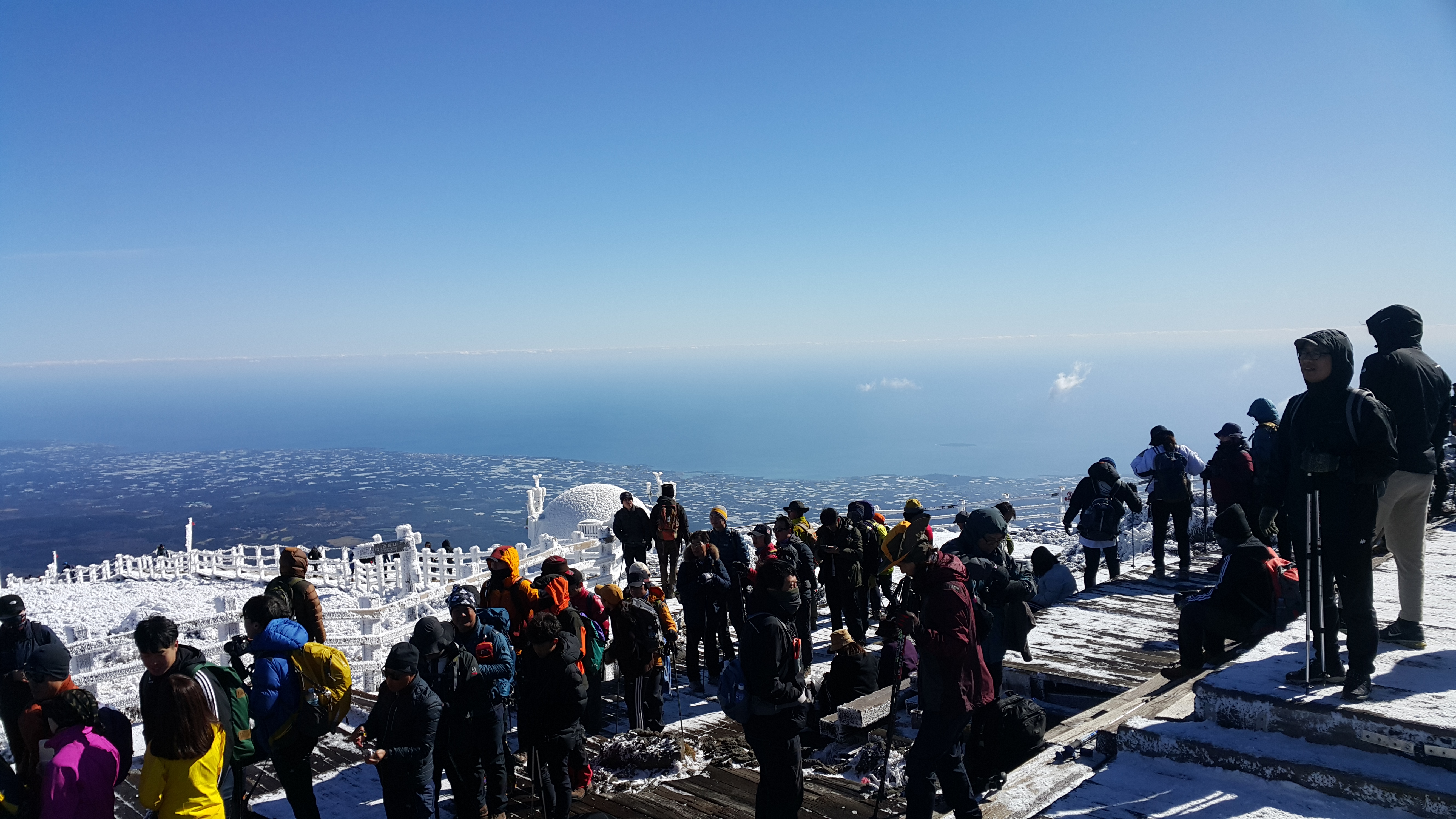 겨울왕국이 떠오르는 설경과 계단이 정말 이쁘다. 하얀색의 눈꽃으로 인해서 바라보는 것만으로도 계속 사진을 찍게 만들었다. 한걸음 더 가면 백록담 정상이다. 그 길 위에서 풍경을 마음껏 담았다.