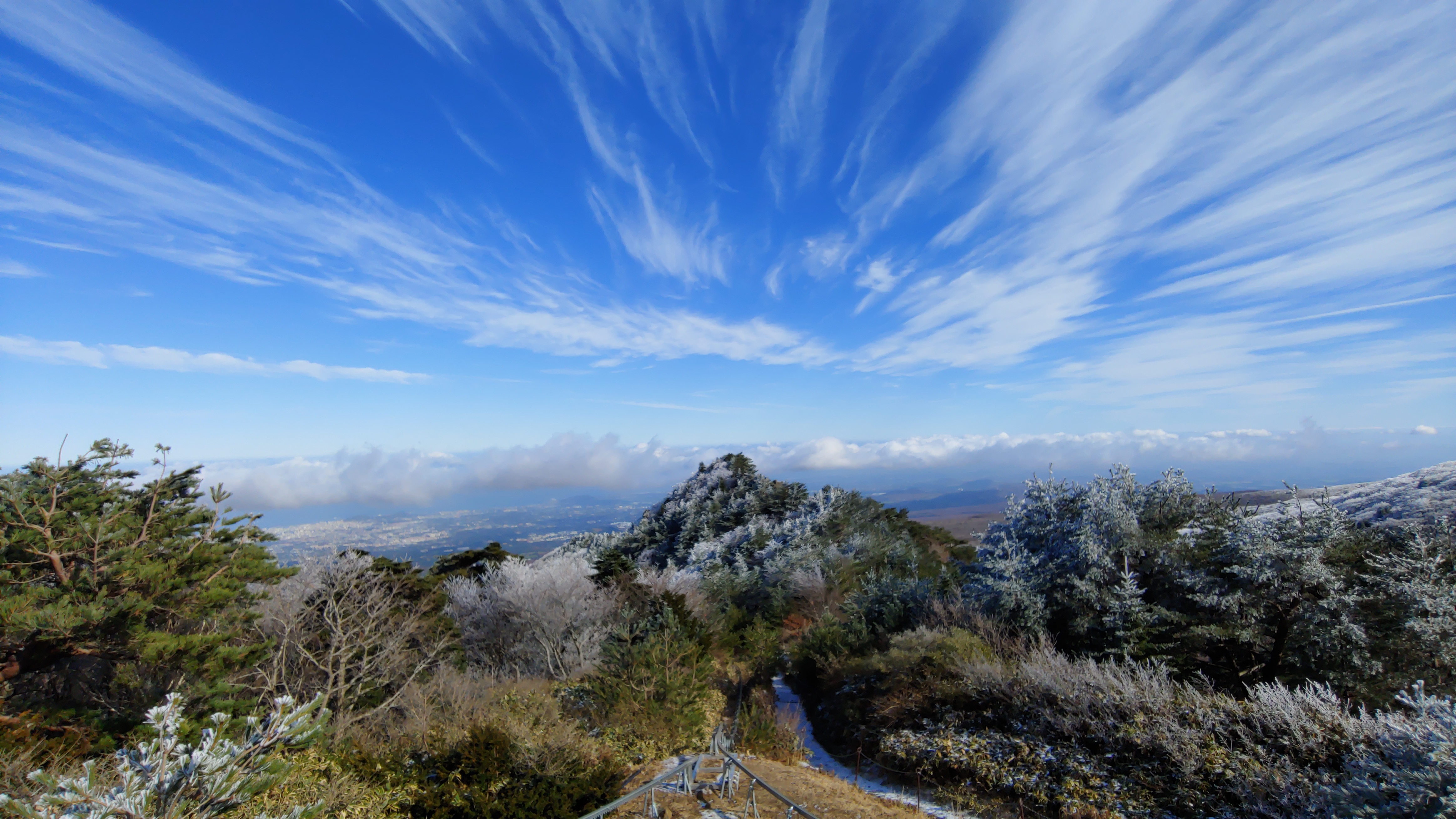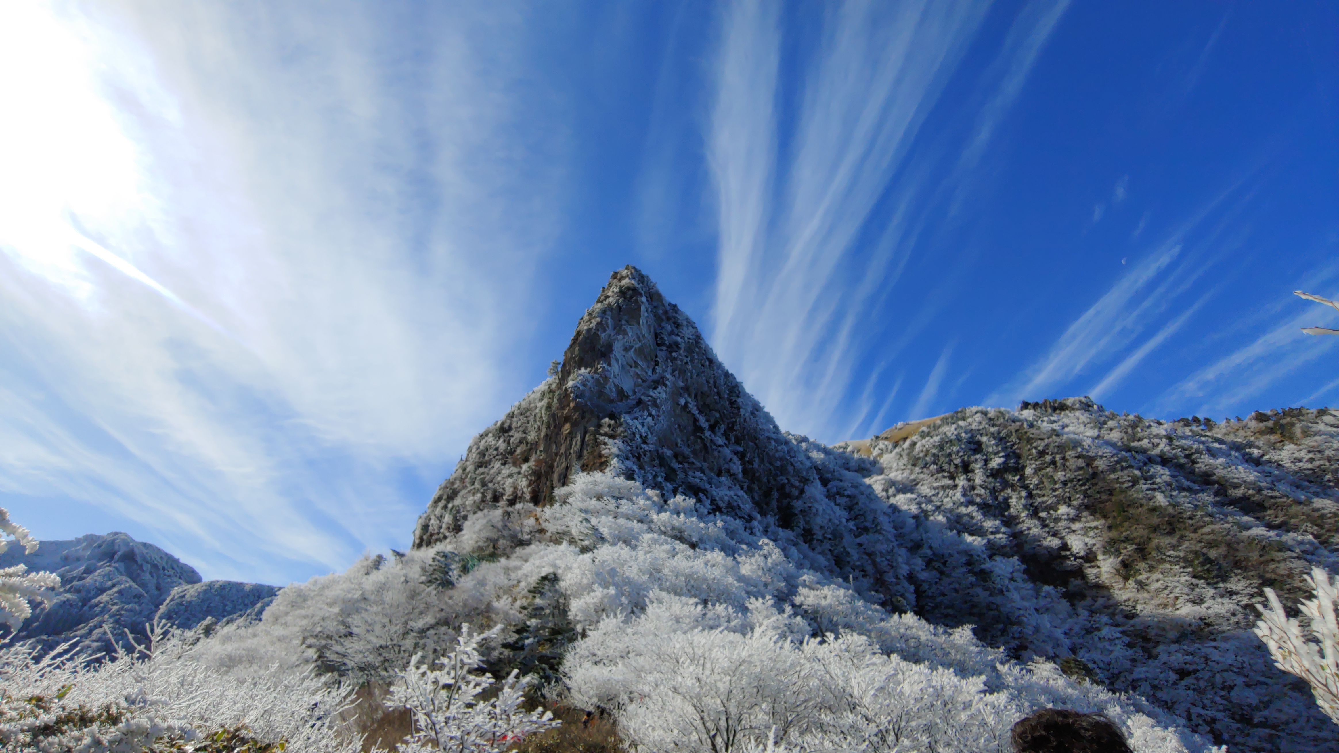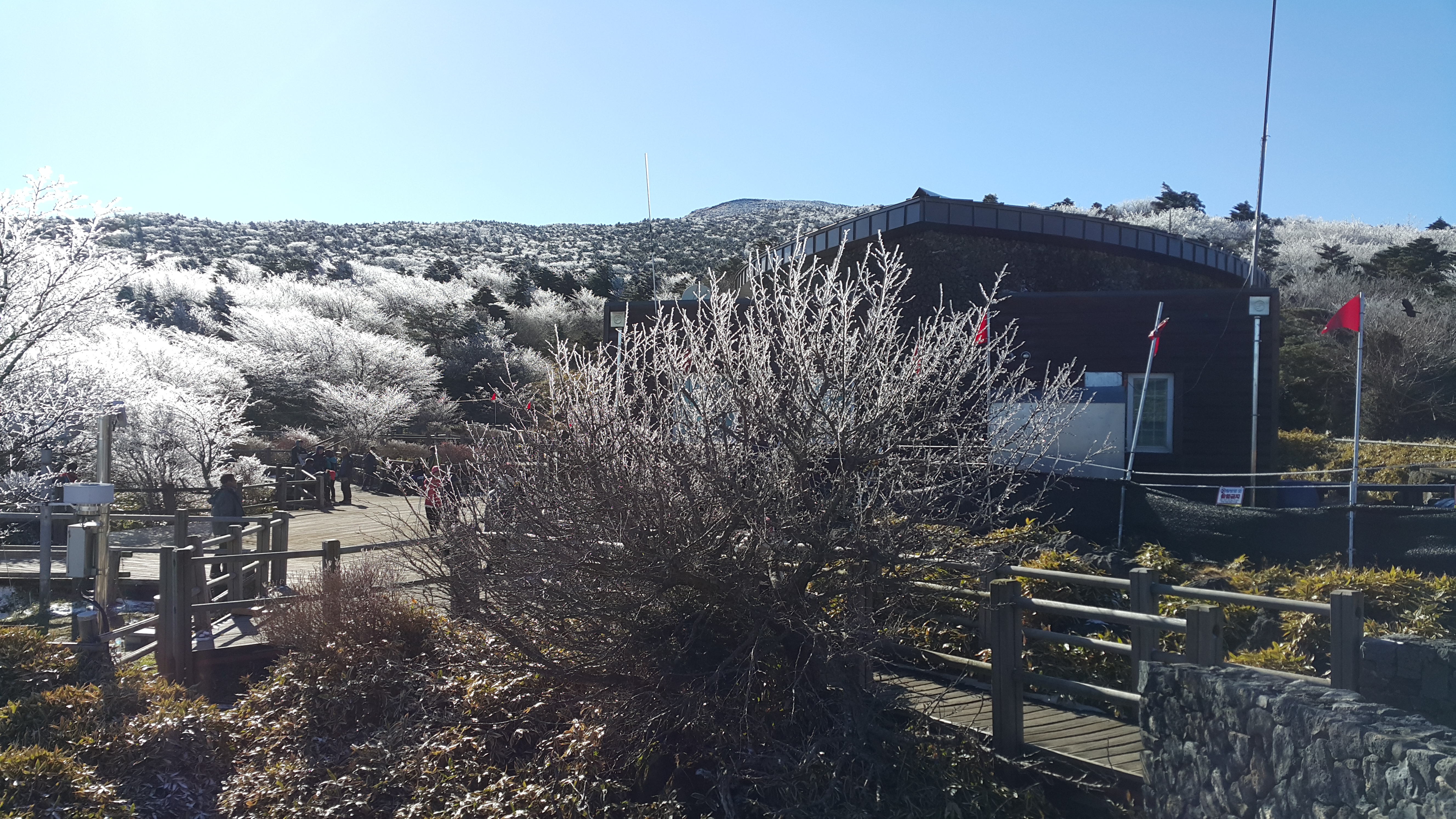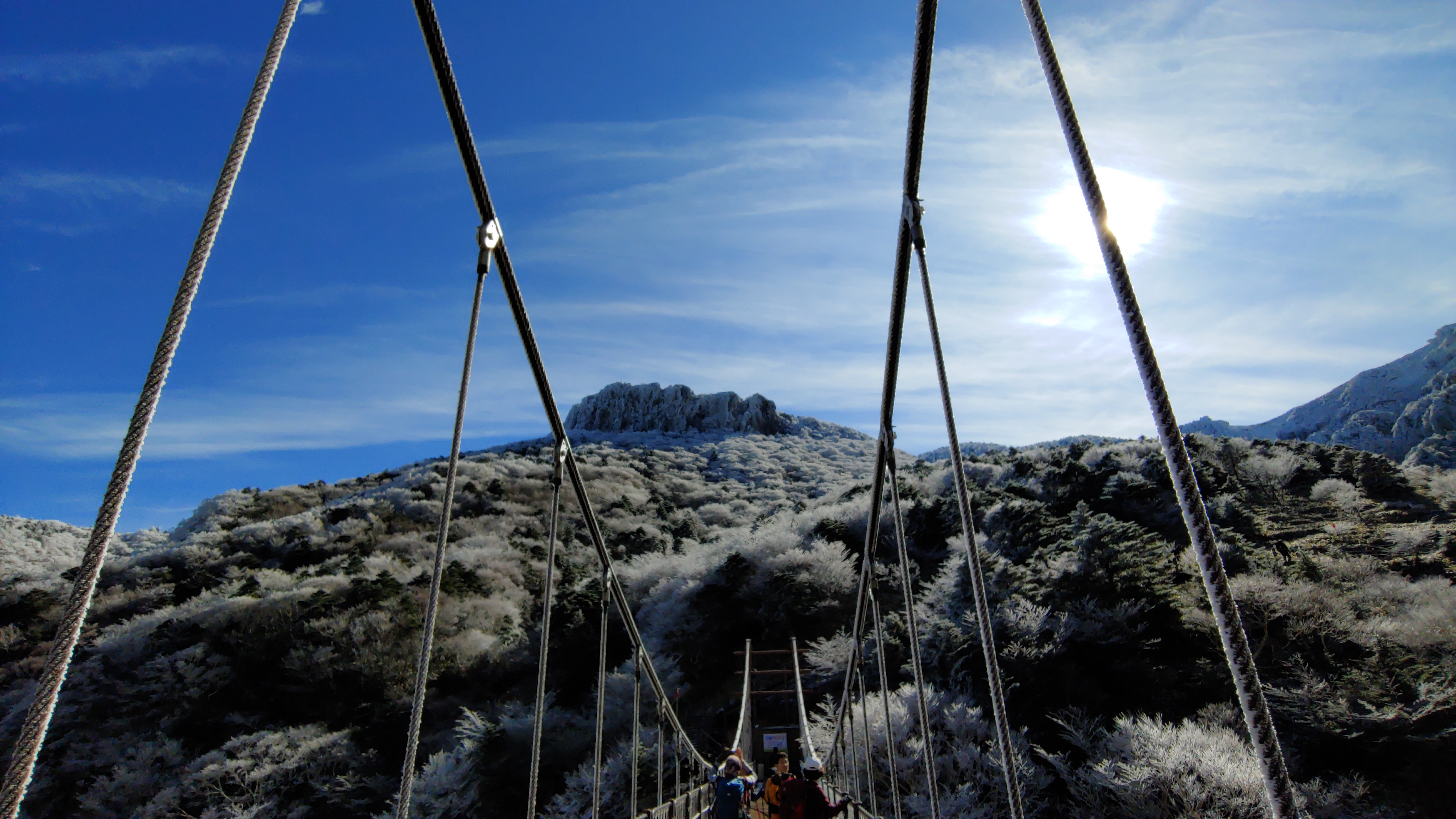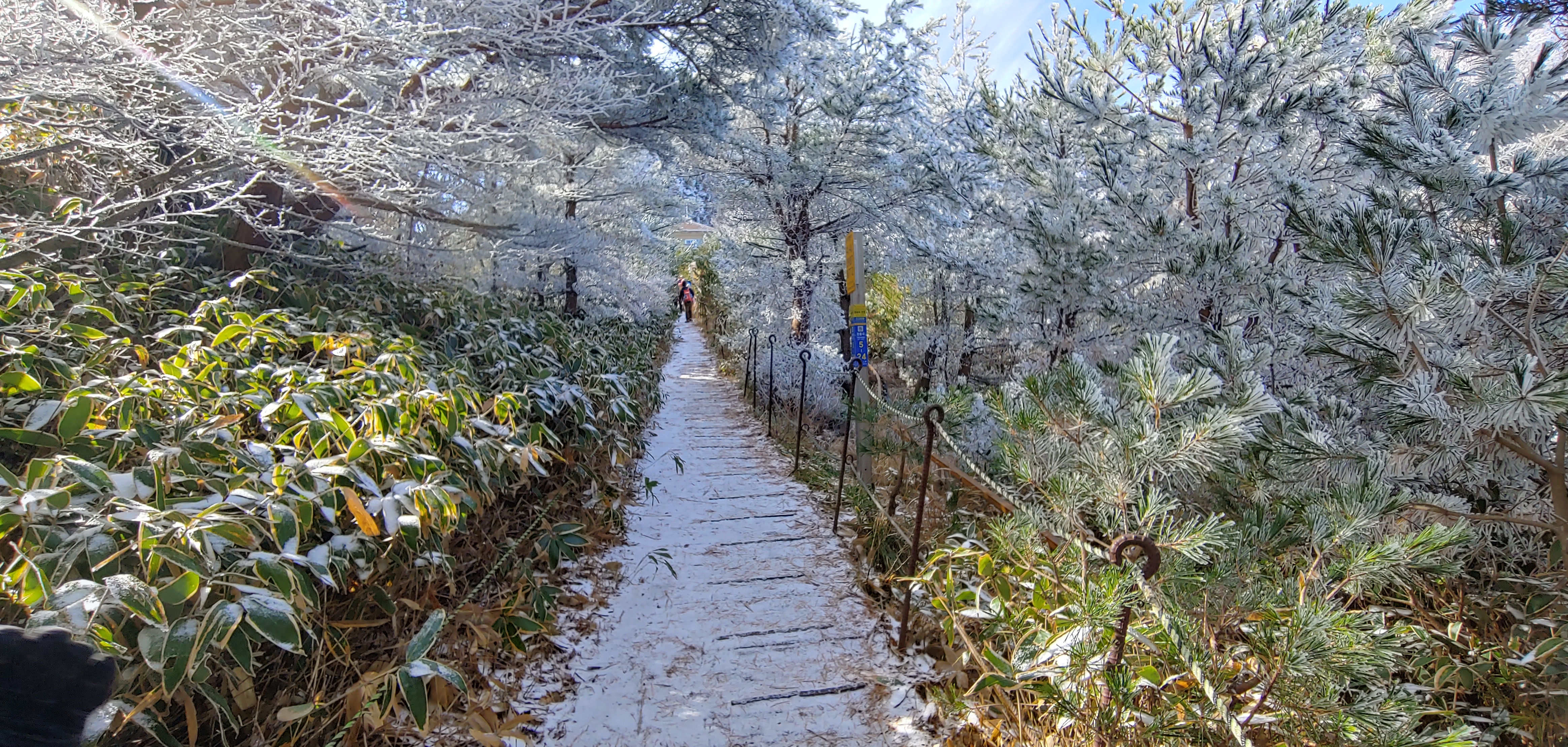 등반 시작한 지 2시간 50분 있었는데 서서히 눈이 보이더구먼 초반과는 다르게 눈이 잔뜩 내려앉은 모습이었다. 등반객이 그리 많지 않았지만, 등반하던 몇몇 분들도 이 풍경에 감탄사를 내뱉었다. 설경이 예술이라는 말이 그대로였다.