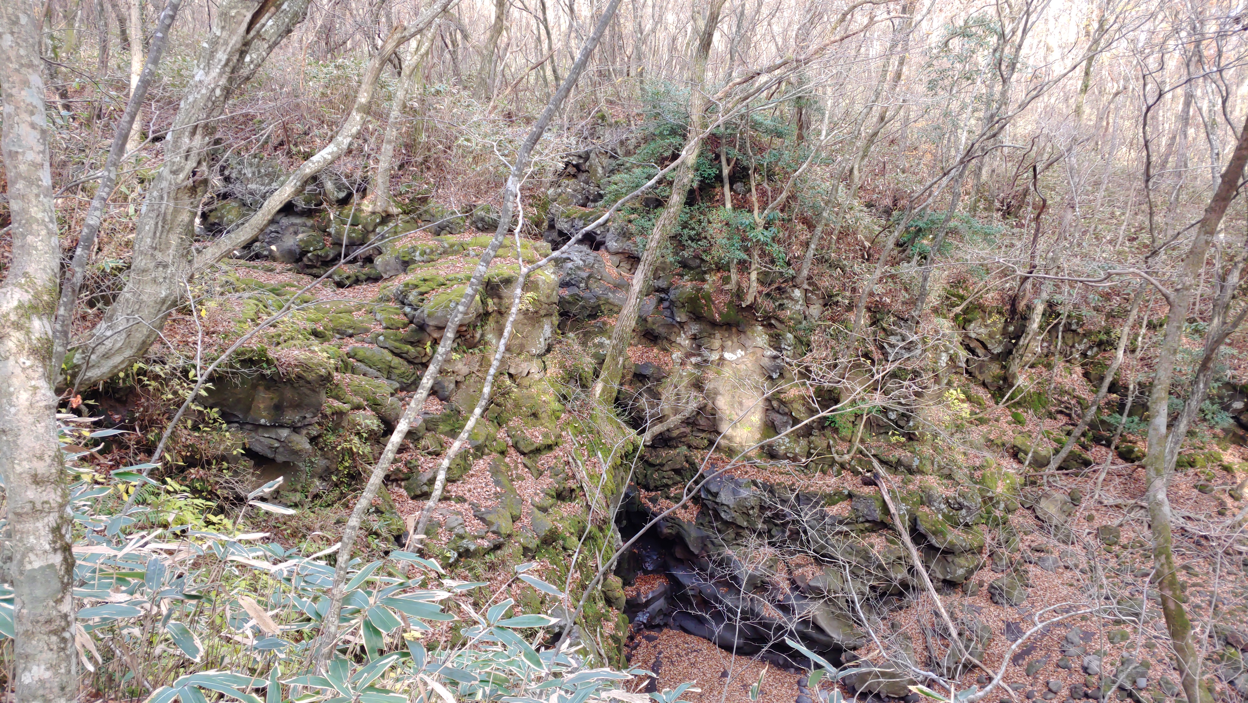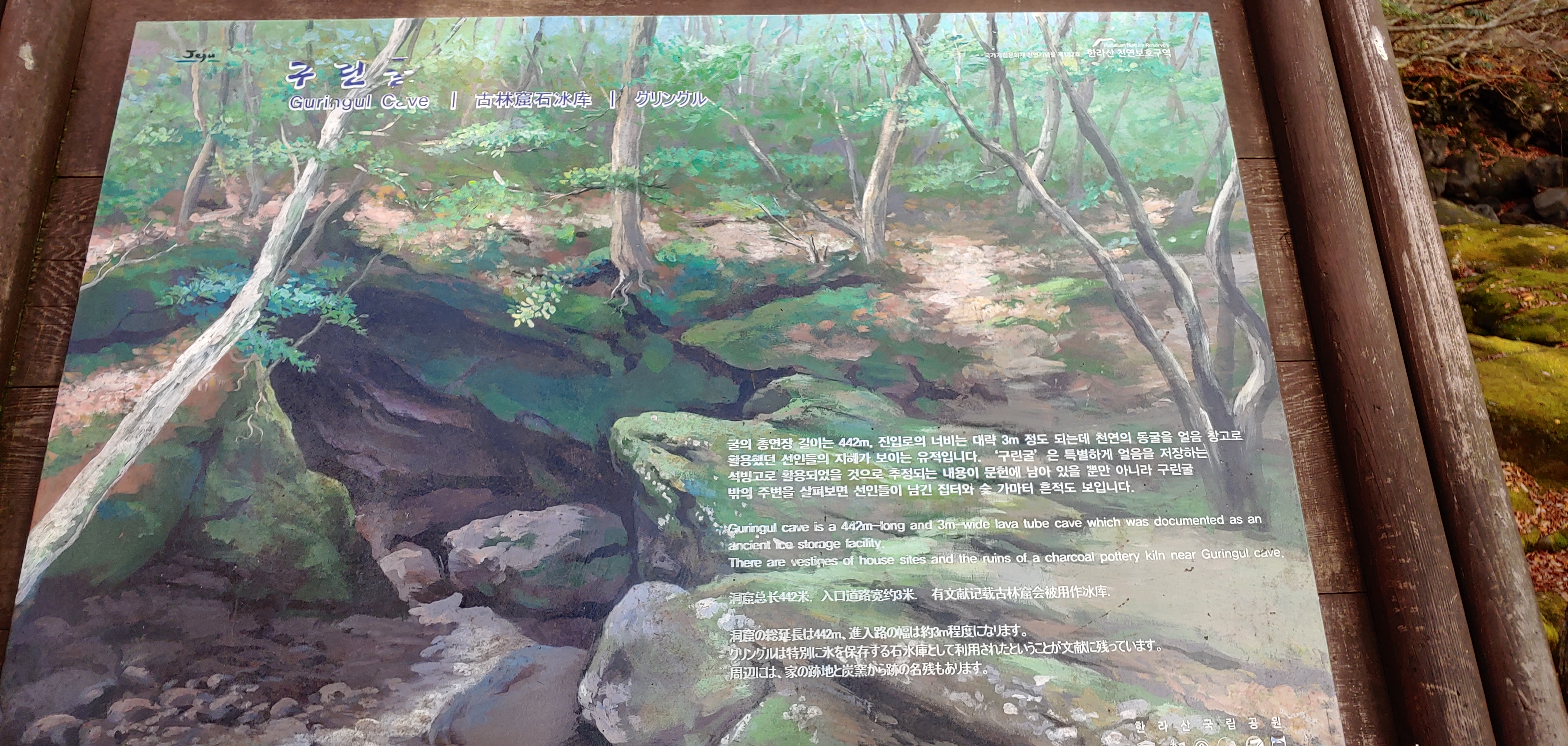 구린굴 표시판이 보인다. 길이 40m, 높이 4~6m, 해발 680m 지점에 있는 한국 용암동굴 중에서 가장 높은 곳에 있는 동물이라고 한다. 얼음 창고로 활용했다고 하는 유적이라고 한다. 박쥐도 군서 하고 있다고 한다.