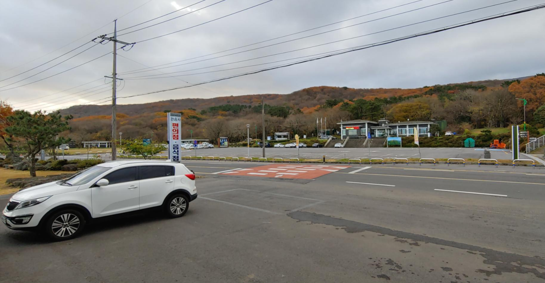 내려오면 이렇게 휴게소 겸 식당이 보인다. 앞에 택시들도 승객을 태우기 위해서 있는데 우린 버스정류장으로 이동했다.