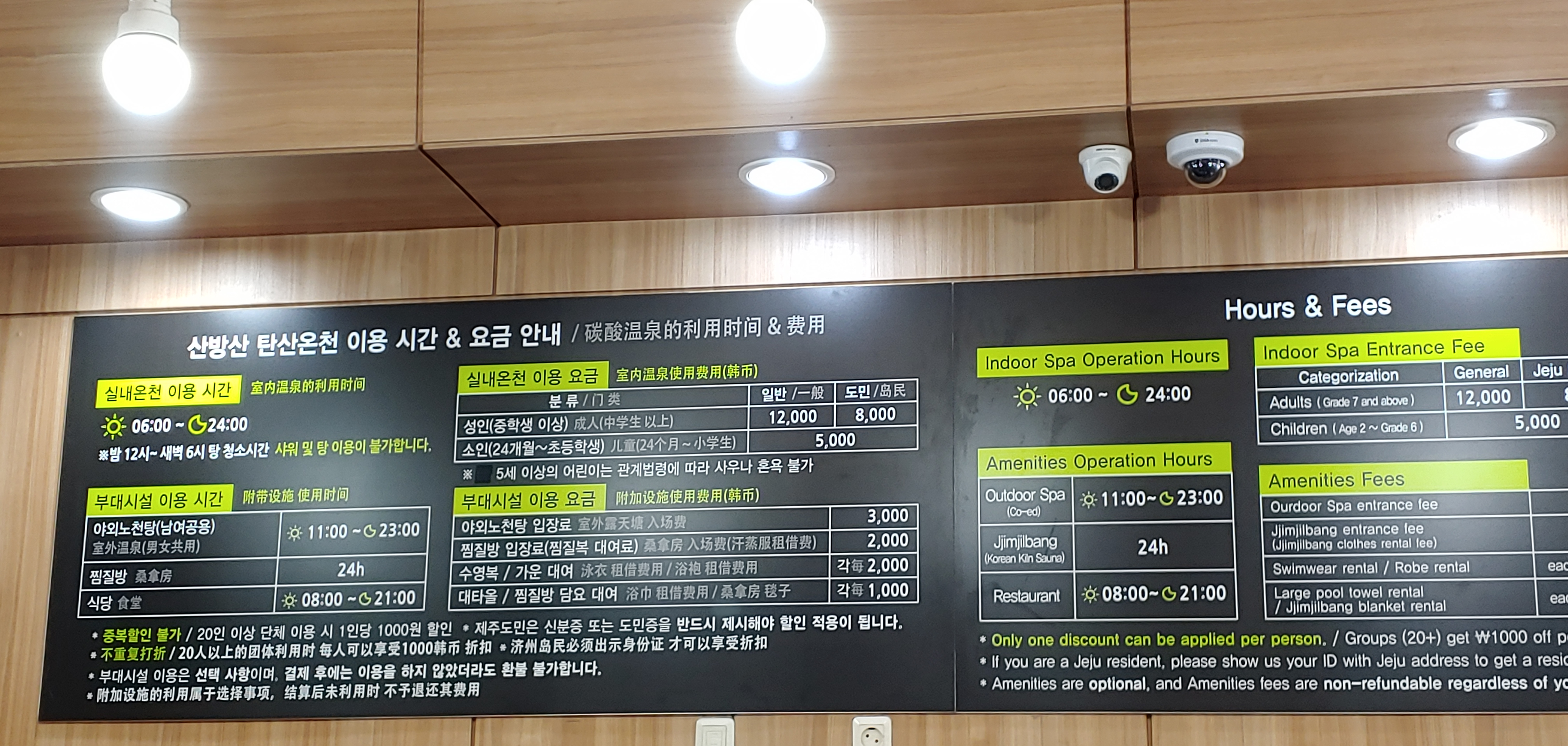 일단 우리가 알아보고 온 가격은 1만 2천 원인데, 도민은 8천 원, 소인은 5천 원이라고 한다. 그런데 우린 야외 노천탕을 이용하고자 했는데 가격이 3천 원 추가되었다. 그리고 수영복 혹은 반바지도 없어서 또 추가 요금 2천 원을 내었다. 나중에 알았지만, 포털사이트에서 검색만 해도 할인된 금액으로 산방산 탄산온천을 이용할 수 있었다. 우린 결국 제 돈 주고 이용을 해야만 했다. 야외 노천탕은 핑크색종이를 팔에 부착하고 이용할 수 있다.