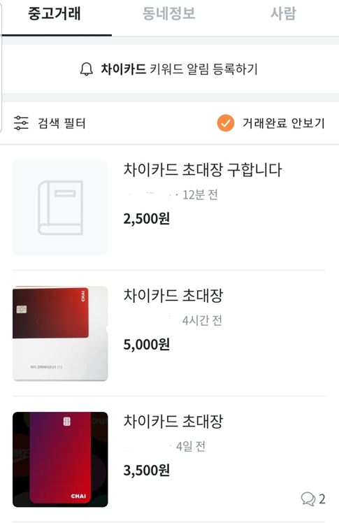 저는 친구 2명에게 초대장을 보냈고 그로 인해 보너스까지 적립을 받았습니다. 요즘은 차이카드 초대장을 받기가 매우 어려워졌습니다. 그래서 중고시장에서도 판매가 될 정도로 인기라고 합니다.